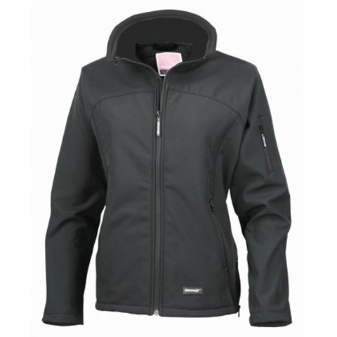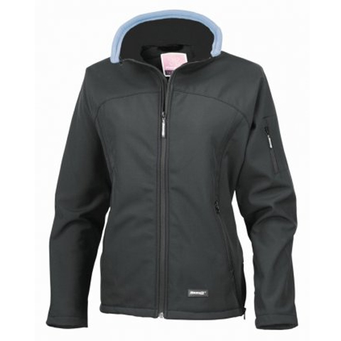 Soft shell three layer bonded fabric: outer layer 93% polyester/7% elastane, membrane and inner micro fleece layer. |