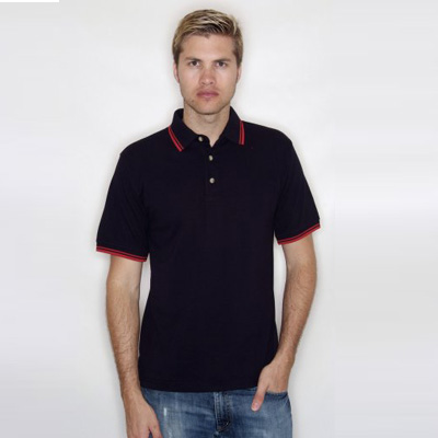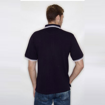 - Contrast tipping on collar and cuffs.