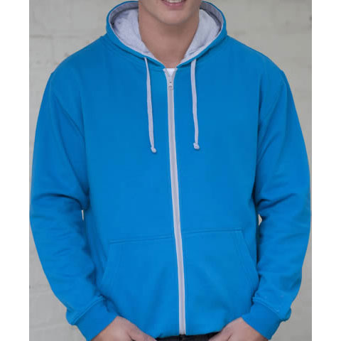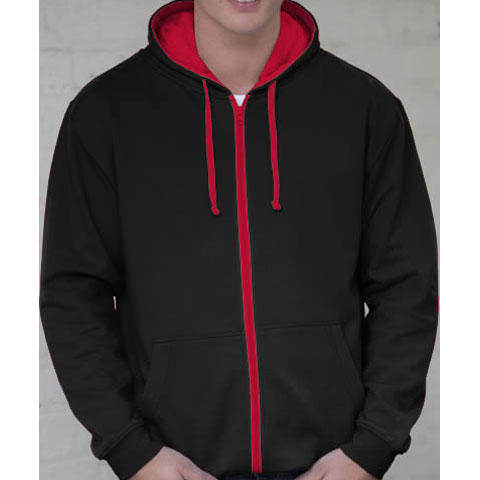 * Full length contrast zip. * Double fabric hood with contrast inner and contrast flatlace drawcord. * Front pouch pockets. * Right front pocket has a small hidden opening for ear phone cord. * Hidden ear phone loops. * Ribbed cuffs and hem. * Twin needle stitching. * WRAP Certified Production. |