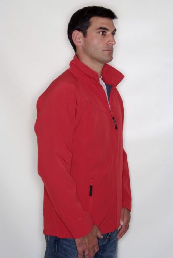 Woven soft shell fabric has a polyester outer 96% polyester/ 4% elastane outer and is polyester fleece backed |