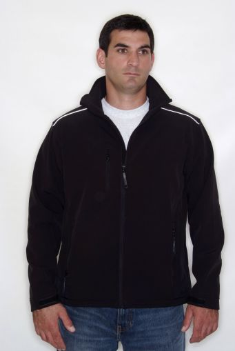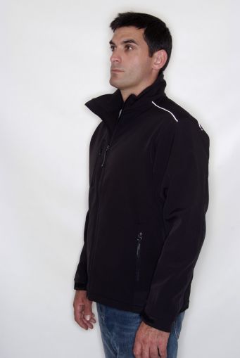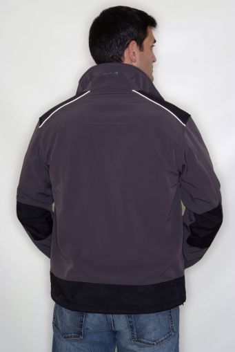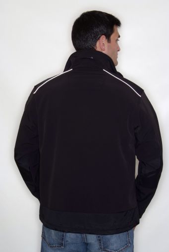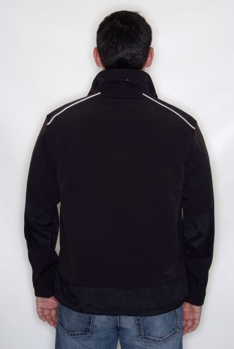 Woven stretch ripstop soft shell fabric has a 96% polyester/ 4% elastane outer and is polyester fleece backed. |